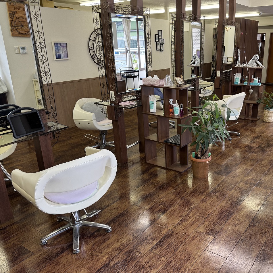 青いビルを通り過ぎた先へ、通りを直進すると左手に大きな窓のBxF SALONがございます。