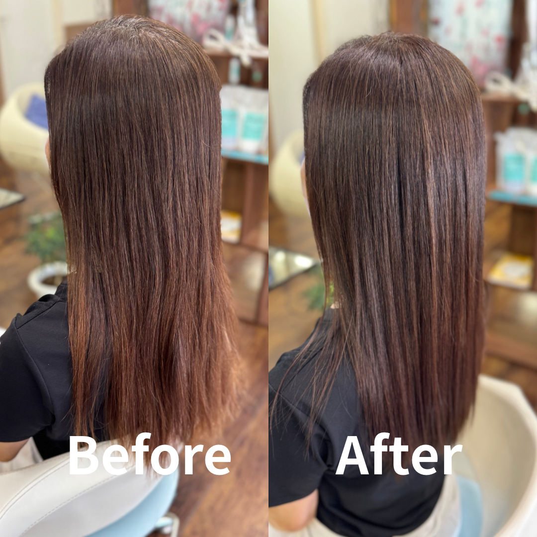 今回は髪に優しい当店オリジナルの薬剤を使用したストレートをしました。